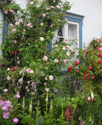 Når det kommer til rosene, er det fremdeles Bonica som er favoritten i hagen. Det er en buskrose som er veldig enkel å få til, og som jeg synes blomstrer overdådig. Herlig! :o) Denne rosen var den første til å springe ut, og står gjerne i blomst til langt utover høsten. Jeg tar alltid inn en del av disse når jeg plukker inn buketter, da de holder seg fint. Kommer det en skur med regn, tåler den det betraktelig bedre enn de fleste andre roser.