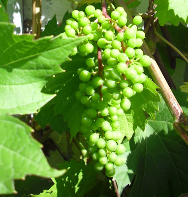 …det lover også bra med druene! :o) Vinranka vokser over alle grenser, og er allerede blitt diger! Og massevis av drueklaser, har gitt opp å telle de! :o) Ja, jeg veit man gjerne beskjærer den, men det har jeg ikke gjort i år heller.. Leste akkruat i Hagen for alle at de anbefalte å beskjære den nå, i juli/august – noen som har erfaring med dette? Har lest tidligere at man helst skal gjøre det nærmest på vinteren.. Hm.. Ja, min er iallefall foreløpig ikke blitt beskjært. Nå er den såpass stor at selv om jeg står på toppen i gardintrappa rekker jeg ikke opp til toppen – ikke like enkelt å binde den opp! :o) Burde fått montert opp noe skikkelig å klatre i, så den kan ordne seg mer selv. Om man gjerne kan beskjære den nå, burde det jo igrunnen være fullt mulig å bruke det man skjærer av til mange stiklinger?? hm.. Og det kunne jo vært veldig moro om man fikk til – drueranka står jo ute året rundt, og vokser så det knaker etter, så den er rimelig hardfør! :o)