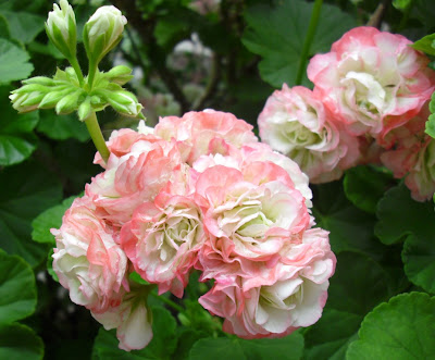 Hun hadde de største fylte pelargonia jeg noengang har sett – DE var digre de!! :o) Skjønner ikke hvordan hun klarer å flytte de pottene inn for vinteren, de var imponerende store! De plantene er nok noen år ja! :o) Hagen hennes er utrolig flott, og jeg vil anbefale alle som er glad i hage å ta turen til henne! For flere bilder, titt innom bloggen hennes – spesielt flott er inngangspartiet med porten og sitteplassen i enden av stien – kjempelekkert!! :o) På bloggen finner du også link til hjemmesiden deres. Vi hadde en herlig tur, og fikk masse inspirasjon – jeg har nå lyst til å ha masse høye riddersporer, flere klematis, roser etc etc.. hihi. Og jeg har også lyst til å bygge litt romantisk klatrestativ av noe slag! :o)