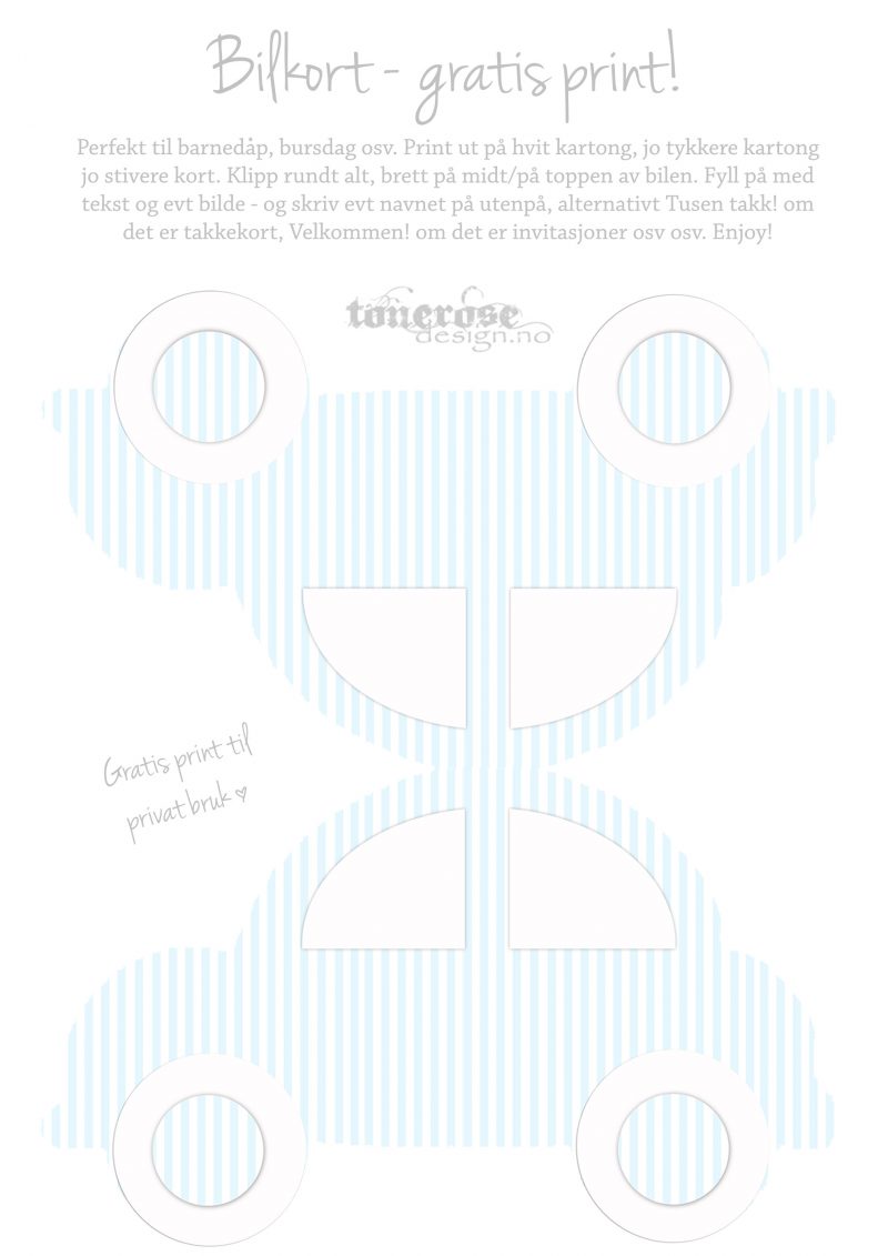 Boblebil kort gratis takkekort invitasjon dåpskort