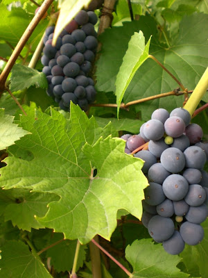 Nå begynner også druene å modnes, kanskje rekker de å modnes nok slik at de kan spises i år? Spennende! Den som hadde hatt et drivhus, da hadde det blitt masse druer! ..mmm..