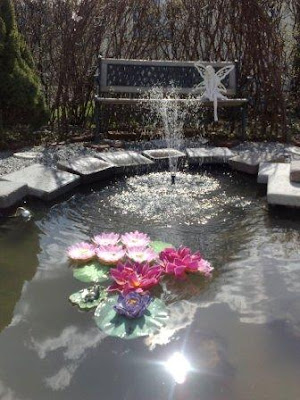 Ellers har jeg fått rensket opp i dammen, tømt den og fylt med nytt vann. Hentet frem vannliljene som har stått til vinterlagring, og satt de ut i dammen. Blir spennende å se om det går bra å få de til å komme igjen!! :o) Har også funnet frem pumpa, og i år har jeg lagt utti noen kunstige blomster også – tenkte det var koselig med noe som liver litt opp nå før jeg har noenting utti der som fyller opp. Har forøvrig knyttet de fast i litt fiskesnøre og ankra de fast i bunnen, slik at de ikke flyter til kantene alle sammen.. Deilig at våren er her! :o)