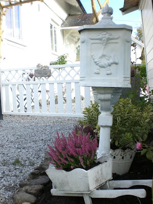 Har malt postkassa vår hvit nå, den var egentlig grønn men etter vinteren som var har den begynt å ruste litt – så da forandret jeg like gjerne “look’n” på den. Har ikke kommet meg så langt som til å male på navnet vårt igjen enda, men enn så lenge får skiltet som henger bak holde.