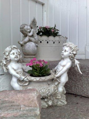 For en herlig dag det har vært i dag – skikkelig sommervær!! Deilig. Denne lille engelen kjøpte vi på vår forrige ferietur, og her om dagen presterte kattepusen vår å velte den slik at den knuste.. Men jeg “gjemte” den litt i det ene bedet, og synes den var søt her også, selv om den er halvparten så stor nå. Pytt pytt! :o)