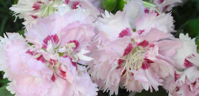 Her er en liten bukett jeg tok inn for et par dager siden, nelliken passer supert i fargene! Det er sikkert ikke så vanskelig å se, men på sommeren er jeg veldig glad i duse pastellfarger både inne og ute. Dermed blir det masse lyse blomster i hagen!