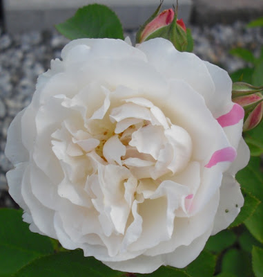 Denne uken hadde vi bryllupsdag – og av den herlige mannen min fikk jeg nytt kamera!! :o) Rosa tilogmed! hihi. Dermed måtte jeg jo ut og ta et nytt bilde av rosen Heritage; den blomstere så pent nå. Det var deilig å kunne ta bilde med skikkelig kamera igjen, en smule mer tungvint å fotografere med mobilen hele tiden – går betydelig raskere nå! :o) Er heldig jeg!