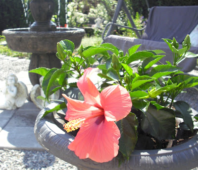 Denne skjønne lille markdekkeren plantet jeg i fjor, og den har vokst massevis! Også kommer den med de søteste små lyserosa blomstene nå. Jeg har veldig lyst til å få tak i mer av denne, og plante den (sammen med andre lave stauder) på hver side av singel”stien”bort til fontene – slik at det etterhvert kan bli et teppe av markdekkende planter her istedenfor singel som det er nå (eller plen som det var før) Tror det kunne blitt pent!