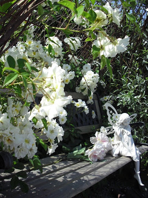Pastellfarger i hagen, engler og roseblomstring